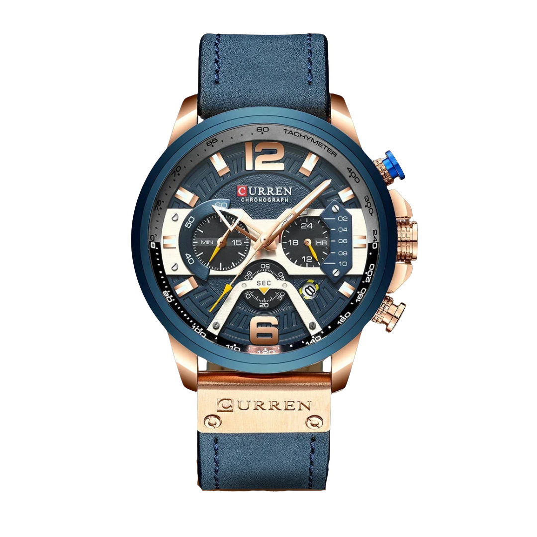 With precise timekeeping and a durable, water-resistant construction, this watch is designed for men who appreciate both style and performance. The fashionable design and bold chronograph function elevate any outfit to the next level, while the military leather strap ensures long-lasting comfort and strength.